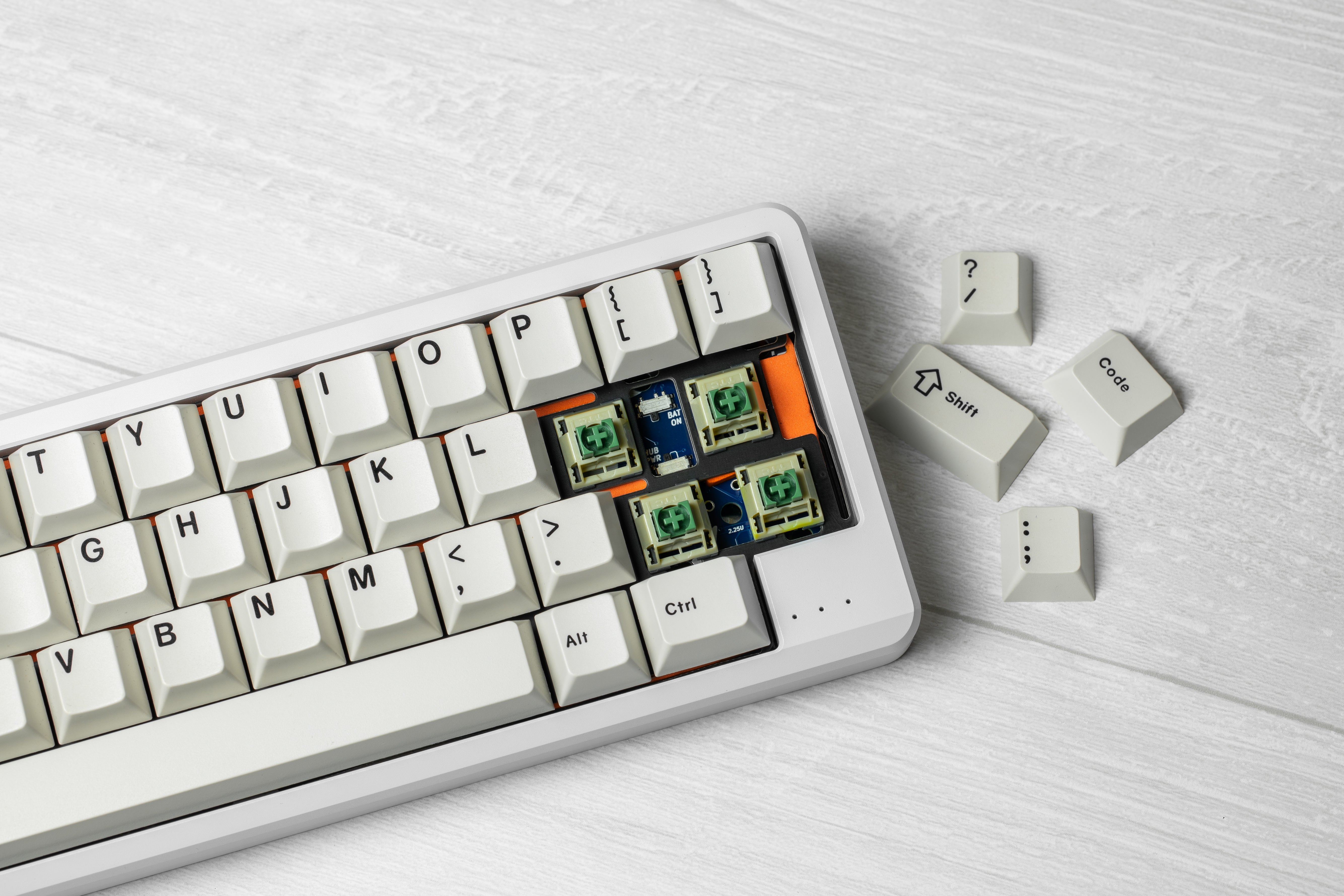 The QMK/VIA PCB has a tiny audio buzzer and rumble feedback (vibration) support, configurable with QMK. The ZMK Bluetooth PCB has a top facing switch which can be toggled to send internal battery power to the USB Hub to charge devices while the Pearl is unplugged.