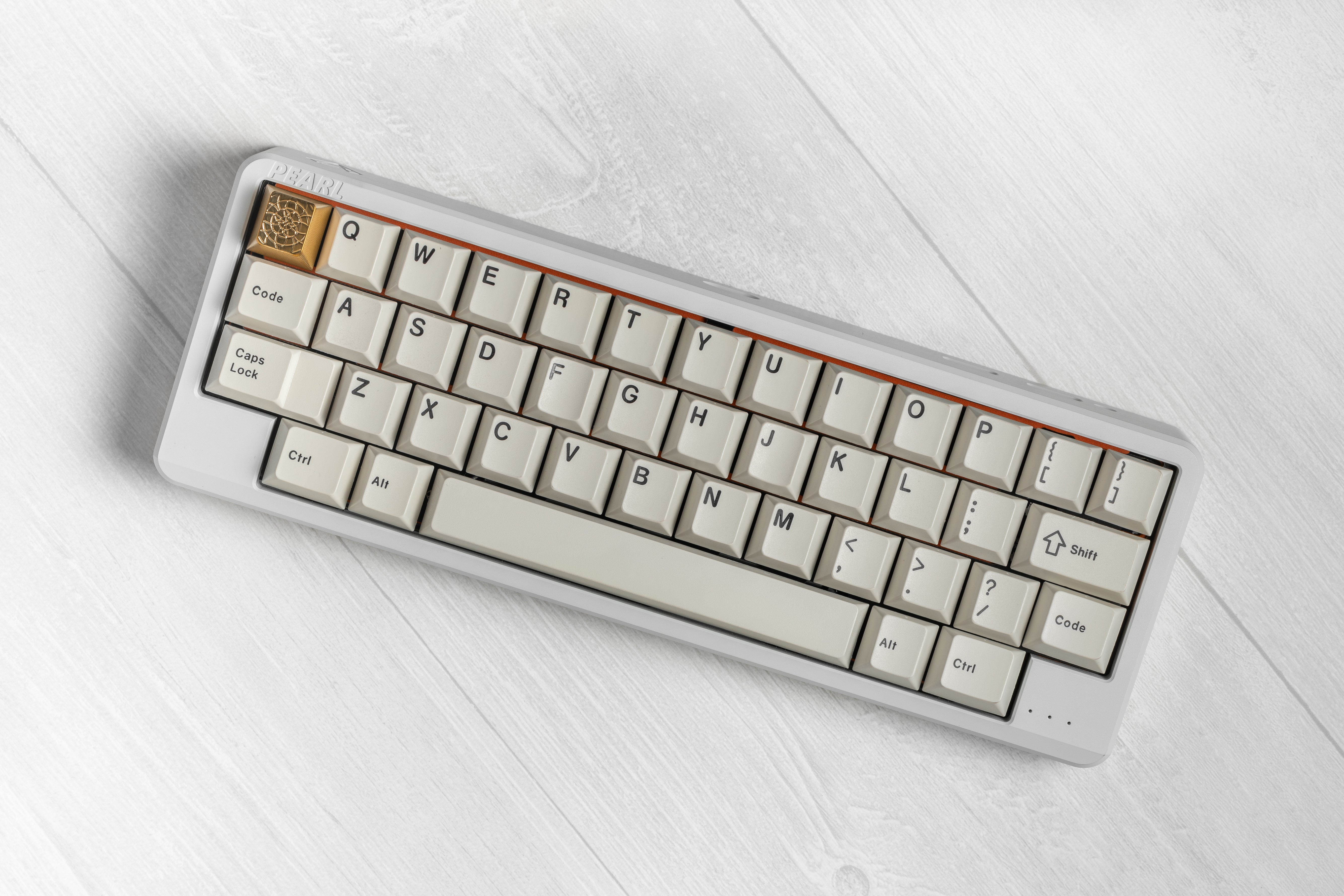 Pearl is a classic, premium, USA produced 45% top-burger mounted wireless keyboard with a 9° typing angle and a Stainless Steel weight. Every order will come with an EVA carrying case for safety of your Pearl and travel convenience.